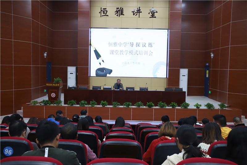 李校長(zhǎng)在培訓(xùn)會(huì)上向老師們介紹了“導(dǎo)、探、議、練”的含義、特點(diǎn)及操作方式。他說(shuō)到建立恒雅“導(dǎo)、探、議、練”課堂教學(xué)模式的目的在于,讓我們的學(xué)生真正的“動(dòng)”起來(lái),讓我們的課堂“活”起來(lái),讓我們的學(xué)生“聰慧靈動(dòng)”起來(lái)。